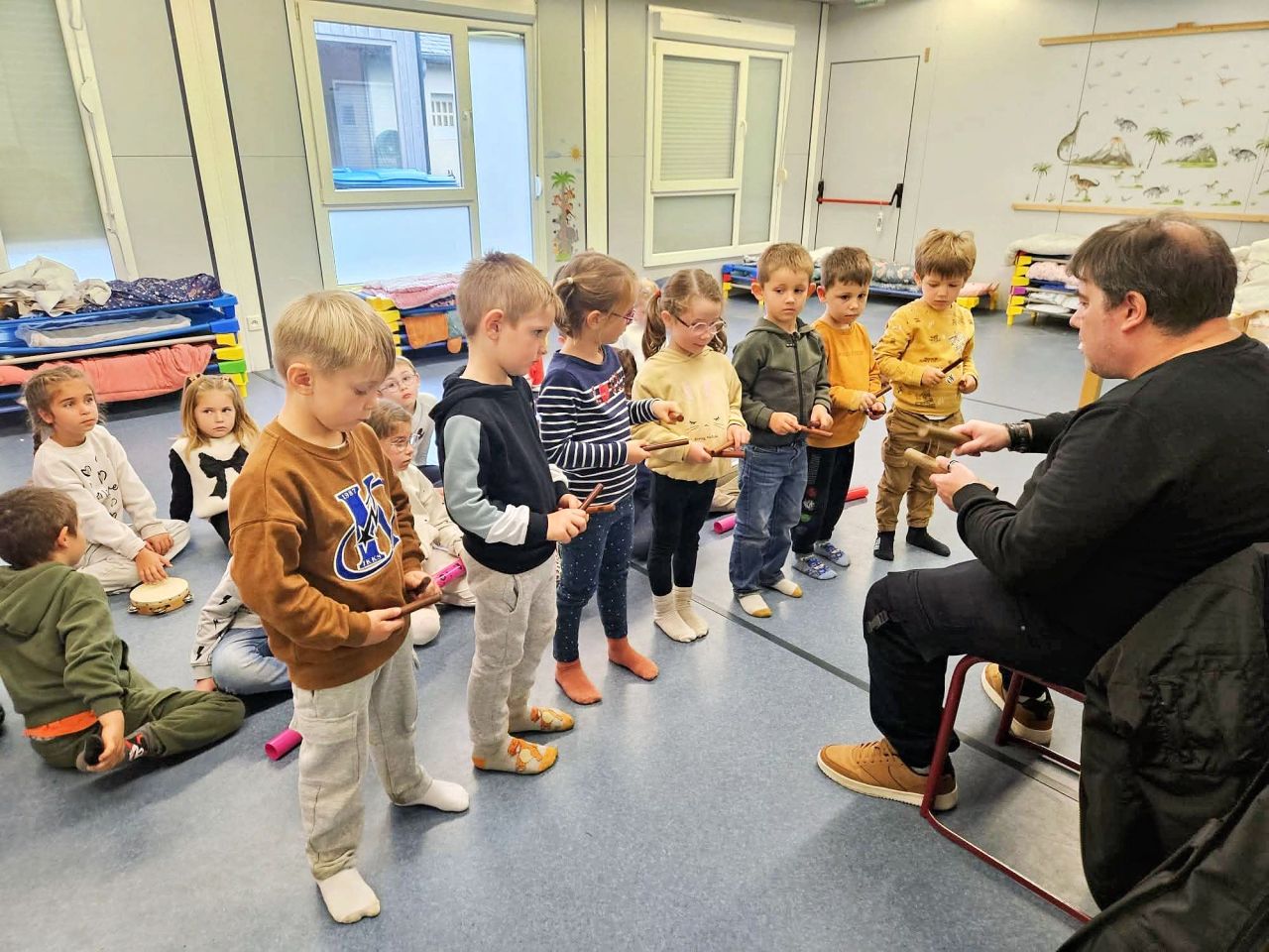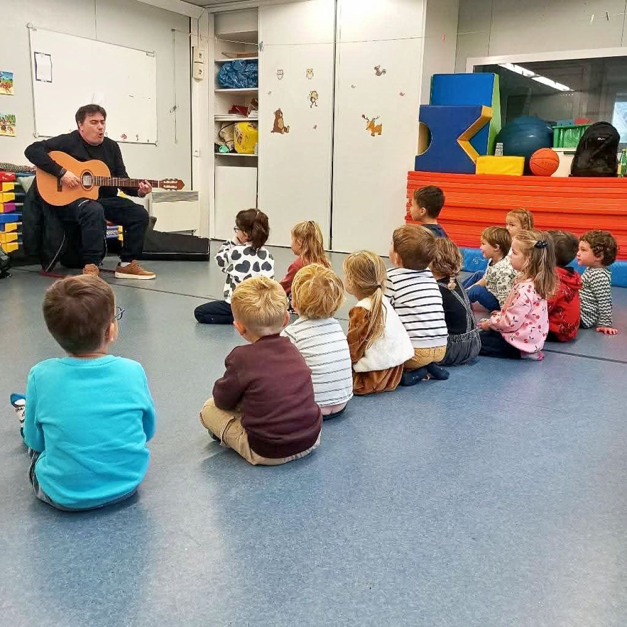 Ce jour, nous avons eu le plaisir d’accueillir Brice Maigné, professeur de musique. Il interviendra auprès de tous les élèves de l’école pour 15 séances.